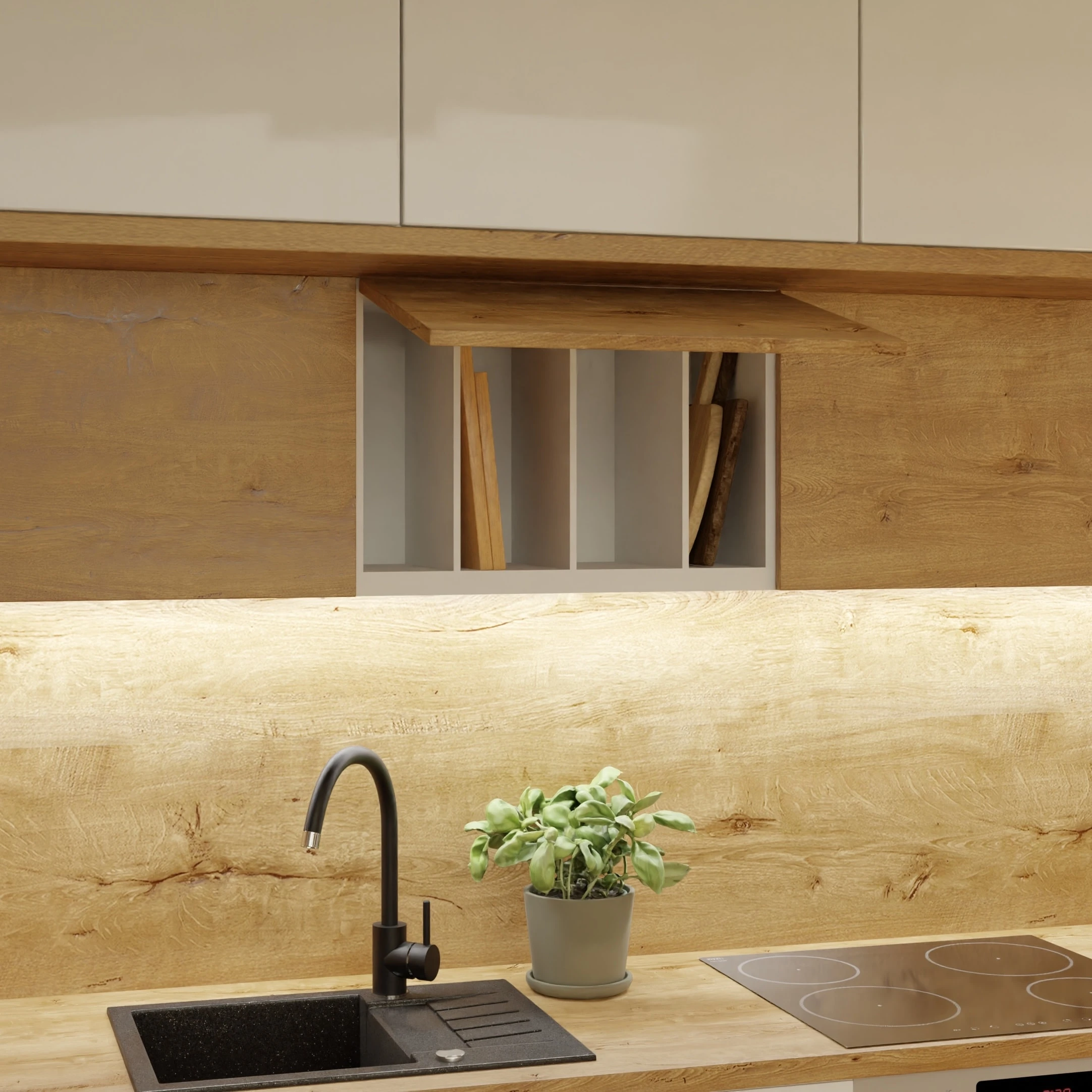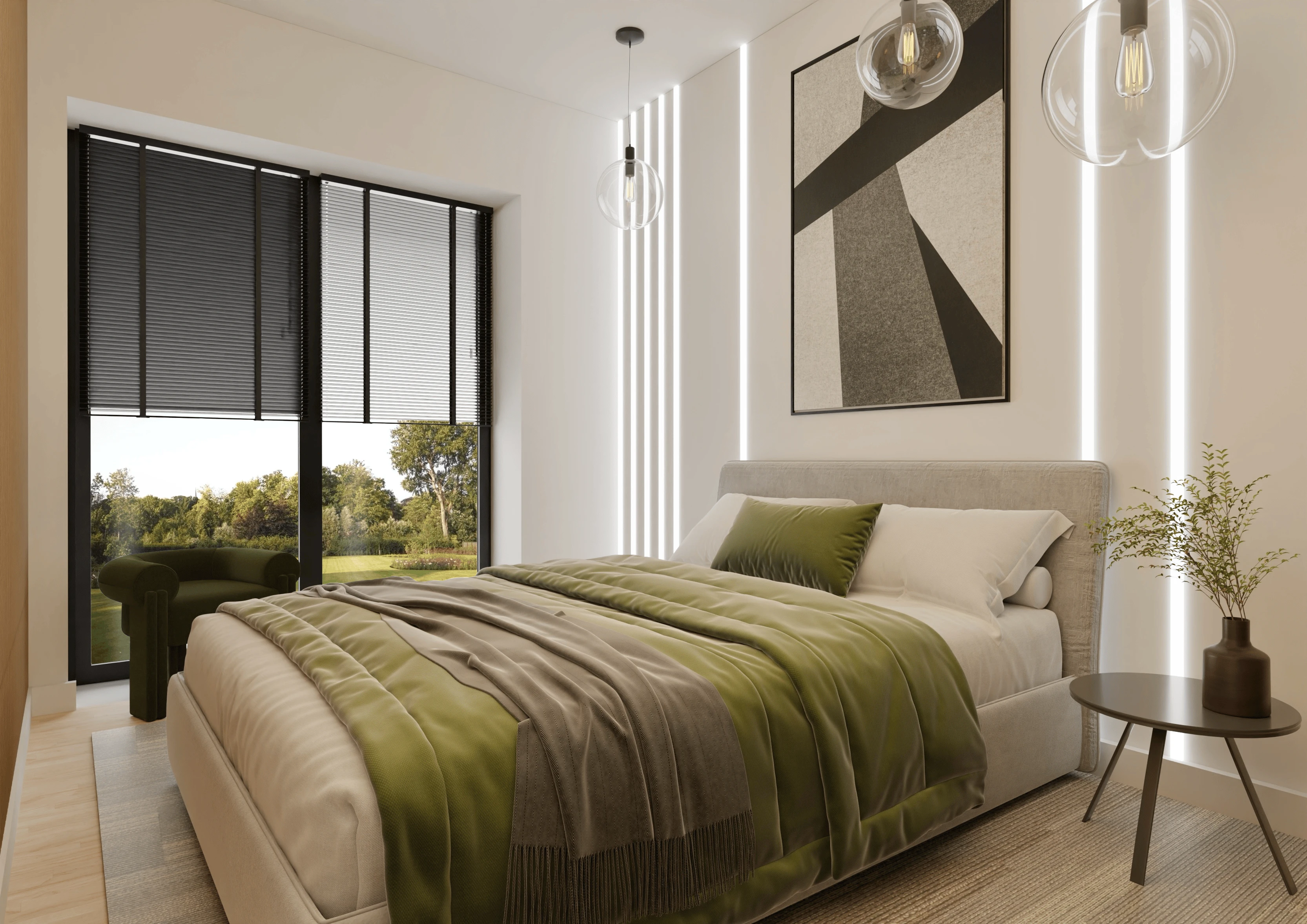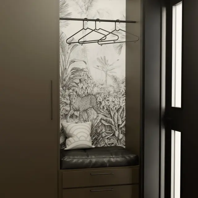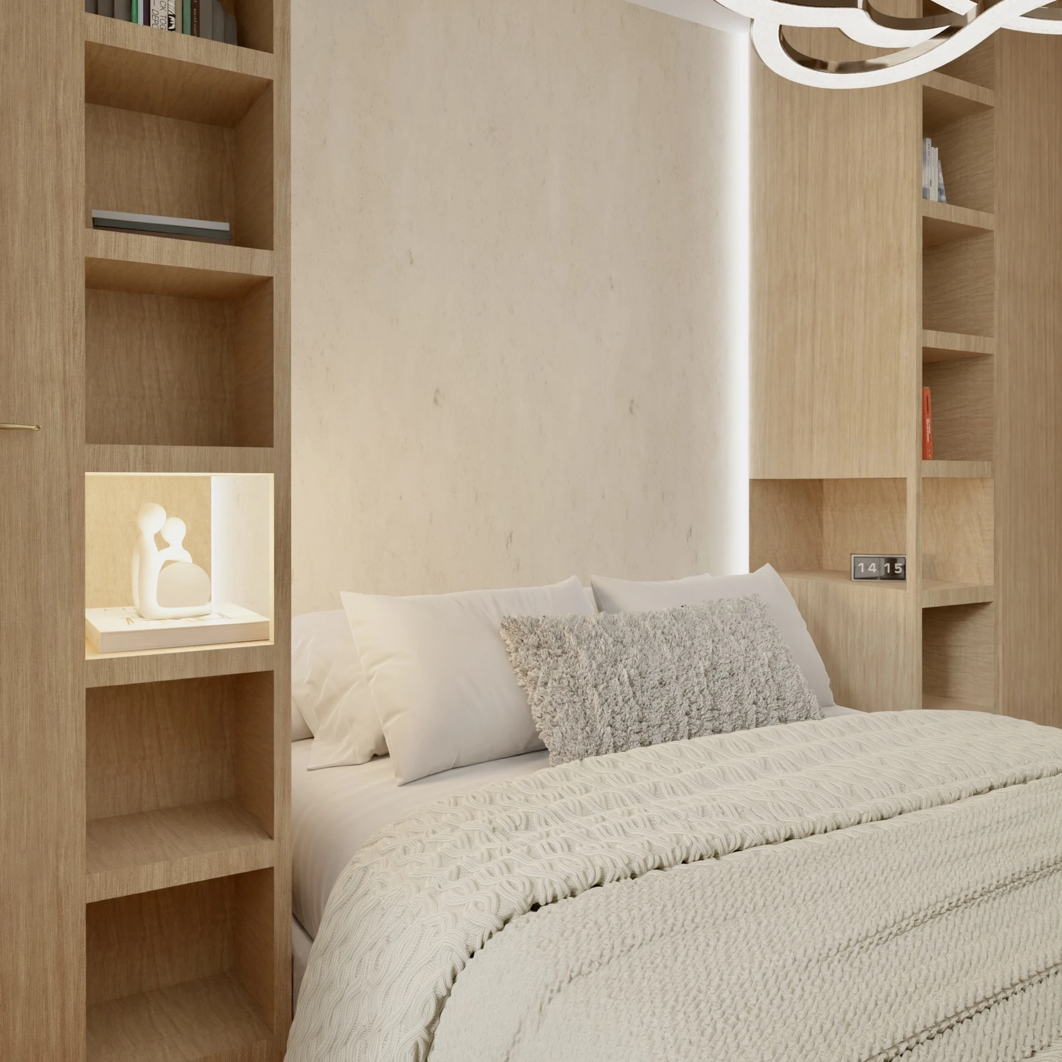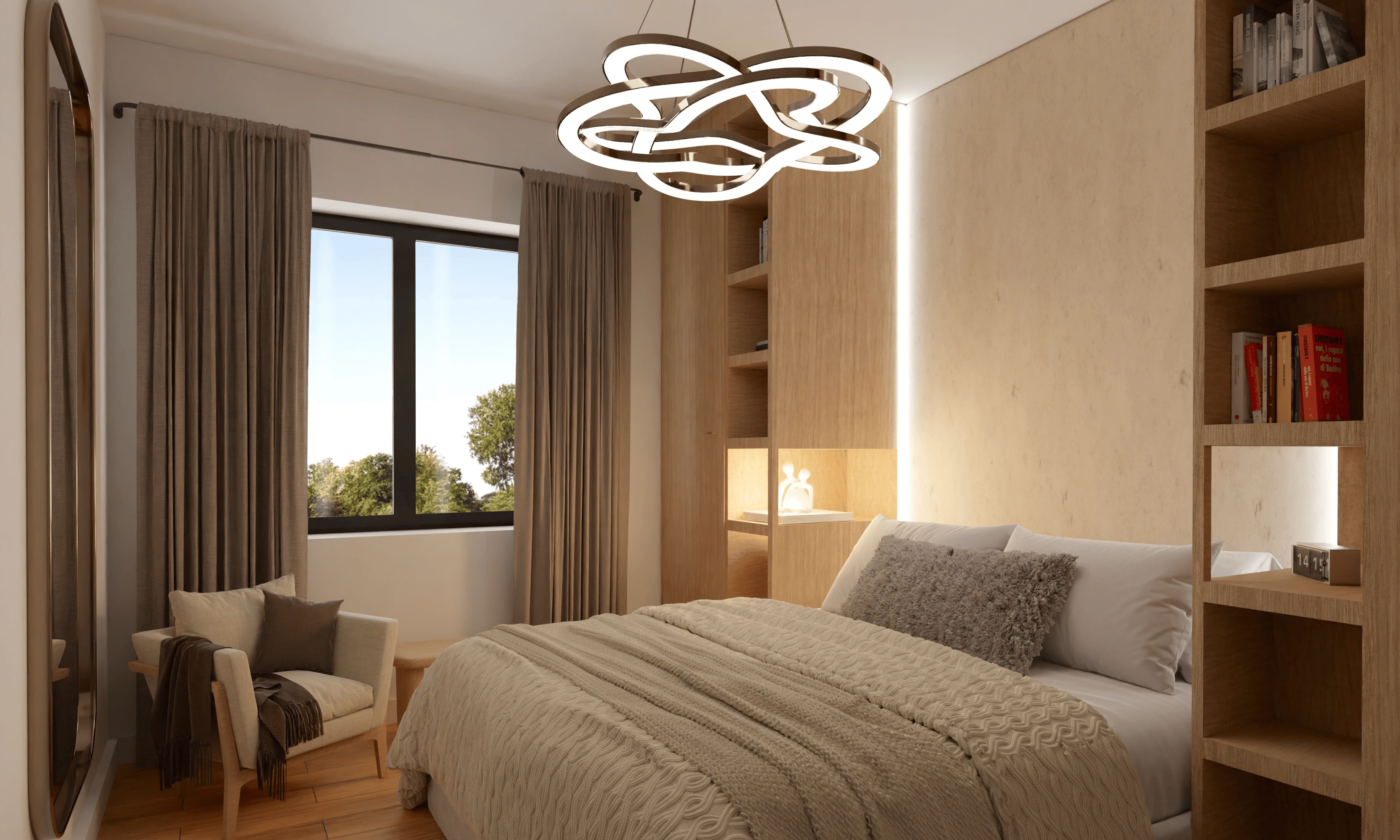 Wnętrze tego apartamentu to pochwała naturalnego światła i przyjaznej kolorystyki. Jasne beże, biel i drewno budują atmosferę spokoju i domowego ciepła. Przemyślany układ sprzyja codziennemu komfortowi – kuchnia z jadalnią, funkcjonalna strefa dzienna oraz przytulne sypialnie. Całość dopełniają miękkie tkaniny, minimalistyczne formy i detal w subtelnej odsłonie.
